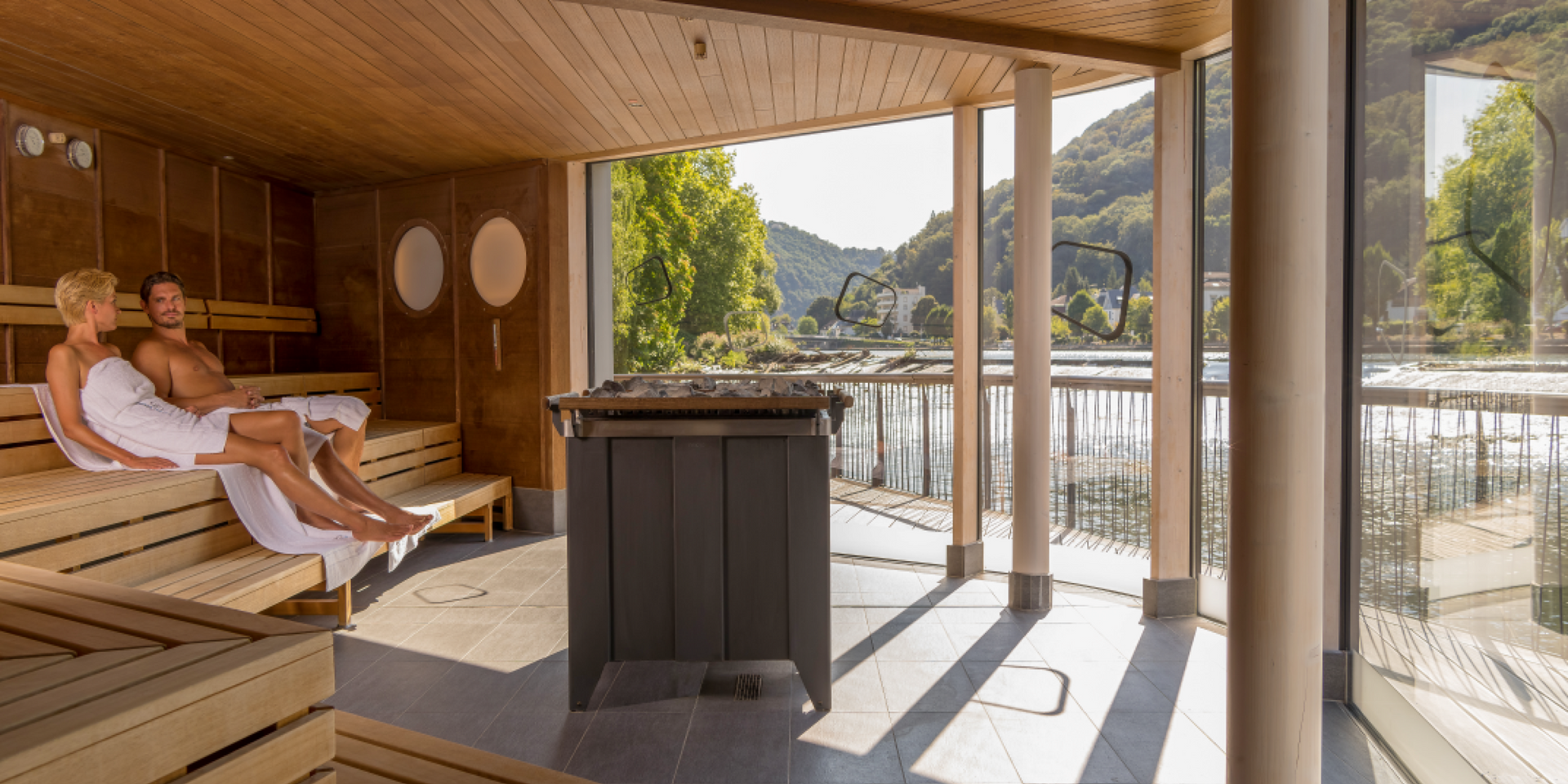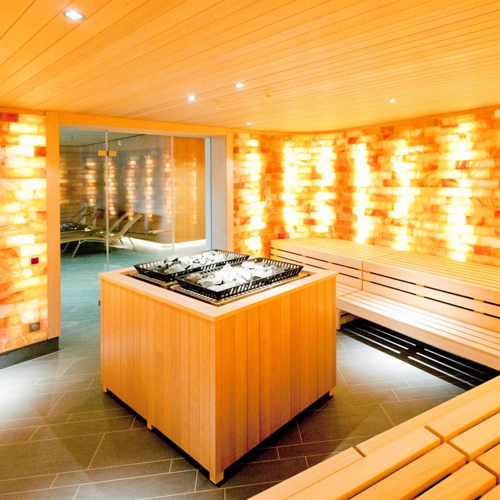 - Sauna-Park mit Fluss-Sauna, Klang-Sauna, Salz-Sauna, Sidroga Kräuterdampfbad, Tauchbecken und 3 Ruhebereichen